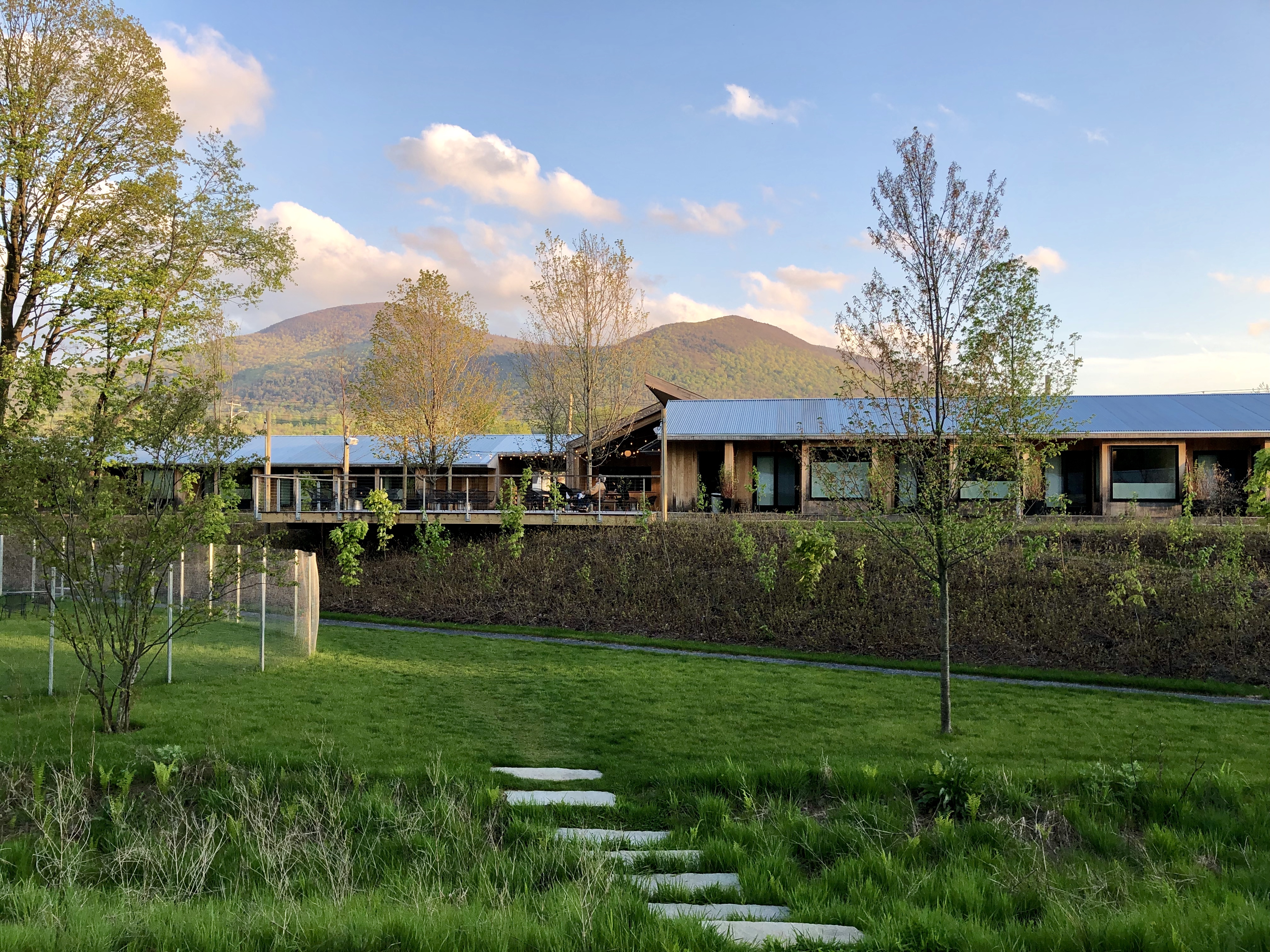 The stunningly simplistic hotel consisting of 48 rooms is sandwiched between Williams College and MASS MoCA and is built as a place for people to gather, relax and take advantage of the surrounding beauty of the area. I have to say Tourists met and surpassed all of our expectations, a place we could fully relax together, catch up on our sleep, eat really good food, enjoy some drinks, explore nature and see some incredible art. It’s also a place that I would bring our own two kids back to in a heartbeat. Some of the rooms are equipped with bunk beds (ours had a dreamy king size) and a saltwater pool is scheduled to open in a couple of weeks. It was the small, thoughtful details that really got to me – old school radios in each room with a preset curated playlist (also available on Spotify) to set the mood, luxurious Ursa Major bath products, outdoor showers and the down to earth friendly service. The hotel is set on fifty acres of forest including endless trails for hiking and a suspension bridge connecting the main property to even more land over the Hoosic River. There are plenty of common areas that you actually want to hang out in and foster mingling with other guests. We spent time in the swoon worthy living/dining room with a fire place equipped with couches that are perfect for sinking into with a great book and relaxed on the deck deck sipping craft cocktails throughout the day and night. Mini camp fires kept conversations going long into the night.