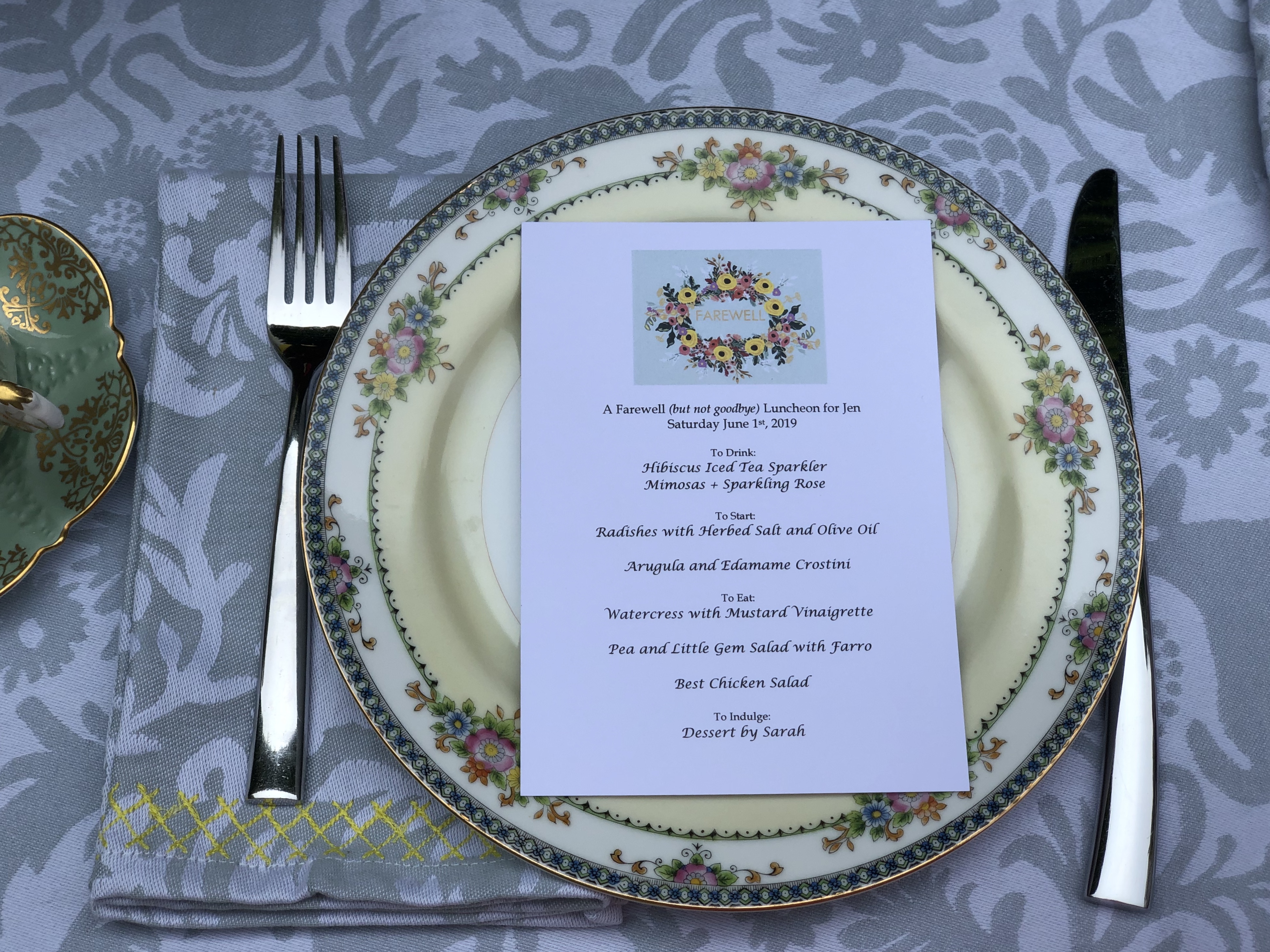 I’ve recently been in total denial of the impending move to the suburbs of one my closest friends in Brooklyn. Our daughters met in their first year of preschool and she not only became one of my closest mom friends but my “person,” the one I could text at anytime of day or night who would drop everything to be there for me or my family. I soon realized that she wasn’t that person to just me but to a multitude of other girlfriends as well, some of whom I had never really gotten to know but knew how special their friendships were as well. I decided to use the occasion of my friend’s departure as an excuse to throw a party in her honor and in celebration of these special friendships. As moms with busy lives, I felt it was far time to host a real ladies luncheon, like the grown up kind where I could set the table with the china I never have the excuse to use and finally pull out my prized possession, my mom’s tea cup collection.