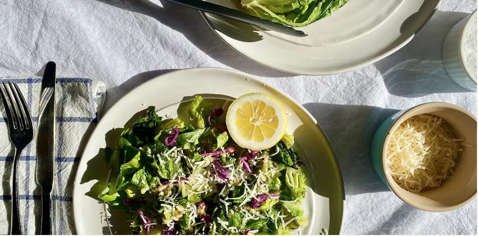 - Transfer lettuce to a serving plate and drizzle generously with dressing. Add some more cheese and fresh cracked pepper. Serve with a soft boiled egg if desired.