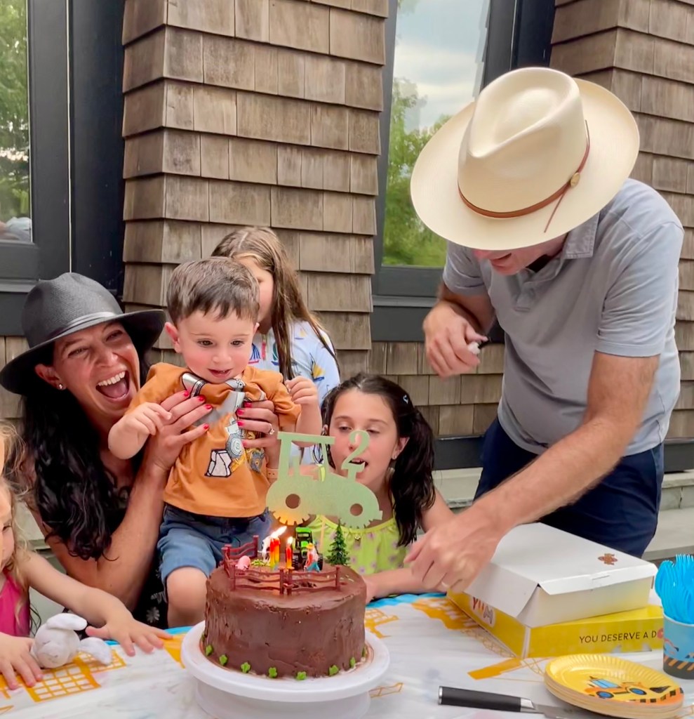 My littlest one just turned two which provided a needed excuse to bake a birthday cake. I was in a bit of a baking rut, my KitchenAid needed to be sent in for a repair and I’ve been relying on a hand mixer which can surprisingly conquer most baking needs in the kitchen. I didn’t quite have the energy or time for an explosion cake for this celebration so went back to my tried and true Best Ever Banana Cake. My mom started baking this recipe years ago, she quadrupled the recipe and served it in individual squares for our wedding rehearsal dinner and I tried it in two rounds for the first time for my oldest daughter’s first birthday. This recipe truly never fails. What I love about it is that it is best made ahead of time and stored directly (yes, right in the baking pans) in the freezer. This means you can bake it a day ahead or even weeks ahead, just make sure to wrap it well. This time around, I swapped out the traditional cream cheese frosting for a chocolate one. My impetus to do so was merely wanting a brown cake (went all in on a tractor themed party for my son) and made an easy buttercream chocolate frosting to mimic dirt. You can bake this in a 9×13 pyrex or two 9 inch rounds, the rounds always feel a little more celebratory to me but the cake tastes just as a delicious served out of one pan and cut into squares. Note, the rounds take a little bit longer to bake.